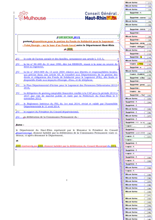 Le Fonds de Solidarité pour le Logement (FSL) intervient pour favoriser le maintien ou le rétablissement des fournitures d’énergie en accordant des aides financières ponctuelles aux personnes et aux familles en situation précaire. Des conventions de partenariat ont été signées avec le CCAS de Colmar et la ville de Mulhouse qui assurent pour le compte du Département la gestion administrative du secrétariat du FSL volet Energie au profit des habitants de leurs territoires respectifs. La compensation financière apportée pour l’exécution de ces missions est de 18 000 € pour le CCAS de la ville de Colmar et de 30 000 € pour la ville de Mulhouse. Cette compensation est prélevée sur le fonds du FSL géré par la CAF du Haut-Rhin, sans dépense supplémentaire pour le Département. Par ailleurs le CCAS de Colmar et la ville de Mulhouse participent au financement du fonds du FSL à hauteur respectivement de 44 000 € et 38 000 €. Il est proposé de renouveler ces conventions de gestion pour une période d’un an.