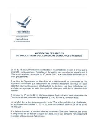 MODIFICATION DES STATUTS DU SYNDICAT MIXTE DE L'AERODROME DE MULHOUSE-HABSHEIM (SYMA)