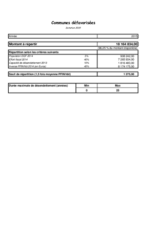 Il est proposé à la Commission Permanente de répartir la dotation 2015 du Fonds départemental de péréquation de la taxe professionnelle s’élevant à 18 872 555 €.