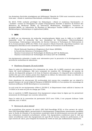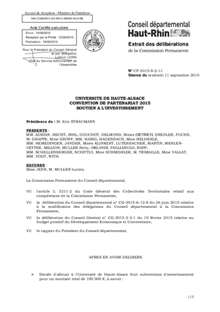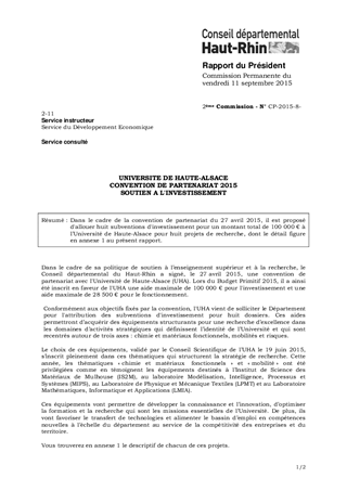 UNIVERSITE DE HAUTE-ALSACE CONVENTION DE PARTENARIAT 2015 SOUTIEN A L'INVESTISSEMENT