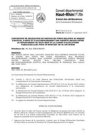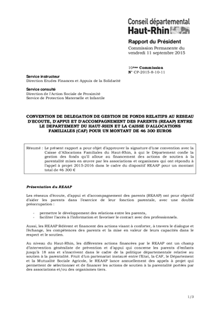CONVENTION DE DELEGATION DE GESTION DE FONDS RELATIFS AU RESEAU D'ECOUTE, D'APPUI ET D'ACCOMPAGNEMENT DES PARENTS (REAAP) ENTRE LE DEPARTEMENT DU HAUT-RHIN ET LA CAISSE D'ALLOCATIONS FAMILIALES (CAF) POUR UN MONTANT DE 46 300 EUROS