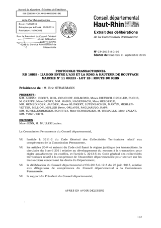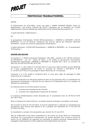PROTOCOLE TRANSACTIONNEL RD 18BIS - LIAISON ENTRE L'A35 ET LA RD83 À HAUTEUR DE ROUFFACH MARCHE N° 11 00223 - LOT 1B : ROUTE DU RHIN