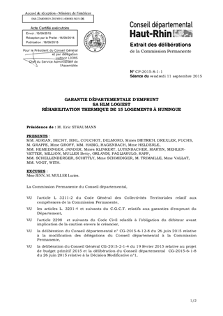 GARANTIE DÉPARTEMENTALE D'EMPRUNT SA HLM LOGIEST RÉHABILITATION THERMIQUE DE 15 LOGEMENTS À HUNINGUE