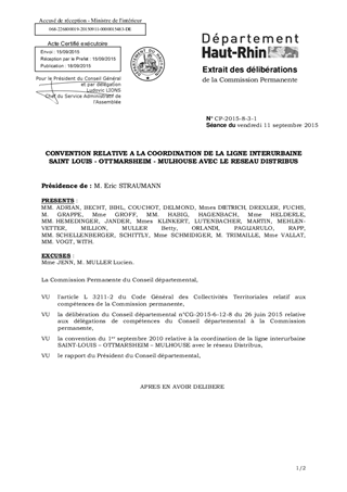 CONVENTION RELATIVE A LA COORDINATION DE LA LIGNE INTERURBAINE SAINT LOUIS - OTTMARSHEIM - MULHOUSE AVEC LE RESEAU DISTRIBUS