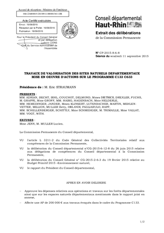 Au Budget Primitif 2015, 200 000 € de crédits de paiement ont été inscrits dans le cadre des travaux de valorisation des sites naturels départementaux ainsi que 12 000 € de crédits de fonctionnement pour des études. Il vous est proposé d’approuver les opérations pour les forêts départementales (668 ha) soit 143 000 € en investissement et pour les espaces naturels départementaux 57 000 € en investissement et 8 500 € en fonctionnement (435 ha), soit un montant total estimé de 200 000 € en investissement et 8 500 € en fonctionnement. Les travaux de restauration du milieu forestier engendreront une recette estimative d’environ 70 000 € issue de la vente des bois.