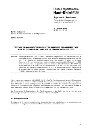 TRAVAUX DE VALORISATION DES SITES NATURELS DEPARTEMENTAUX MISE EN OEUVRE D'ACTIONS SUR LE PROGRAMME C133 C633