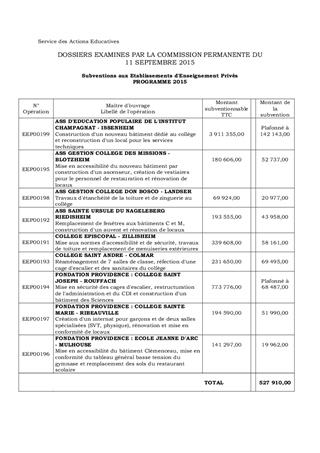 SUBVENTIONS D'INVESTISSEMENT AUX COLLEGES PRIVES, EN 2015