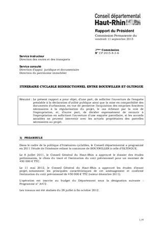 ITINERAIRE CYCLABLE BIDIRECTIONNEL ENTRE BOUXWILLER ET OLTINGUE