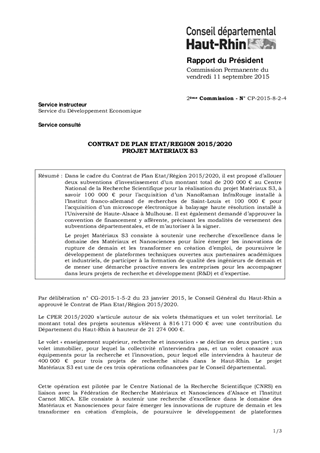 CONTRAT DE PLAN ETAT/REGION 2015/2020 PROJET MATERIAUX S3