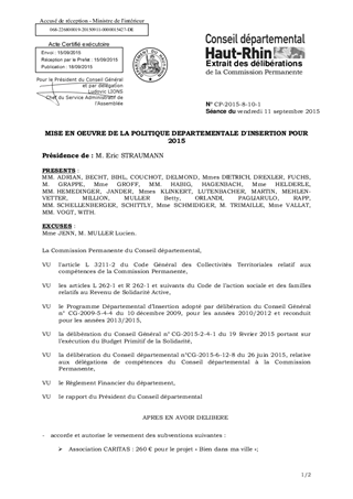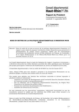 MISE EN OEUVRE DE LA POLITIQUE DEPARTEMENTALE D'INSERTION POUR 2015