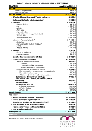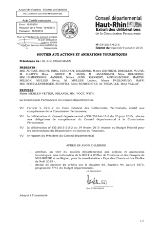 Il est proposé d’attribuer, dans le cadre de la politique départementale de soutien aux actions et animations touristiques, une subvention de 6 000 € à l’Office de Tourisme et des Congrès de MULHOUSE et sa Région, pour la manifestation « Pays des Chants et des Etoffes de Noël 2015 »