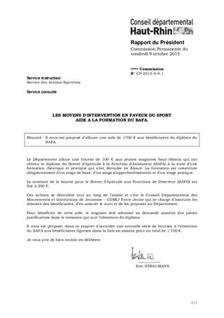 Il vous est proposé d'allouer une aide de 1700 € aux bénéficiaires du dîplôme du BAFA.