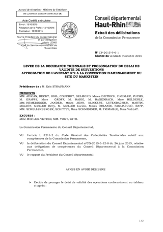LEVEE DE LA DECHEANCE TRIENNALE ET PROLONGATION DU DELAI DE VALIDITE DE SUBVENTIONS APPROBATION DE L'AVENANT N°2 A LA CONVENTION D'AMENAGEMENT DU SITE DU MARKSTEIN