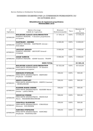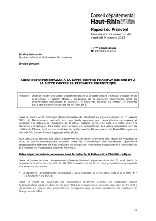 Dans le cadre des aides départementales à la lutte contre l’habitat indigne et du programme « Habiter Mieux » en faveur de la précarité énergétique pour les propriétaires occupants et bailleurs, il vous est proposé de retenir 70 dossiers pour une subvention totale de 93 568,10 €.