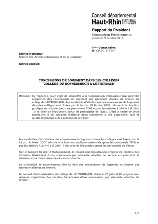CONCESSIONS DE LOGEMENT DANS LES COLLEGES COLLÈGE DU NONNENBRUCH À LUTTERBACH