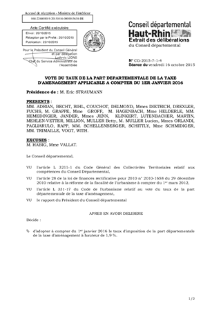 VOTE DU TAUX DE LA PART DEPARTEMENTALE DE LA TAXE D'AMENAGEMENT APPLICABLE A COMPTER DU 1ER JANVIER 2016
