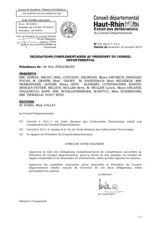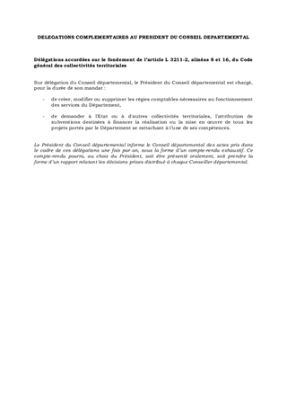 DELEGATIONS COMPLEMENTAIRES AU PRESIDENT DU CONSEIL DEPARTEMENTAL