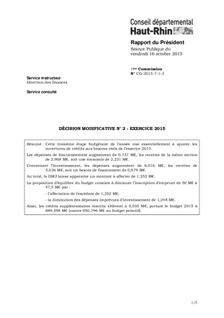 DÉCISION MODIFICATIVE N° 2 - EXERCICE 2015