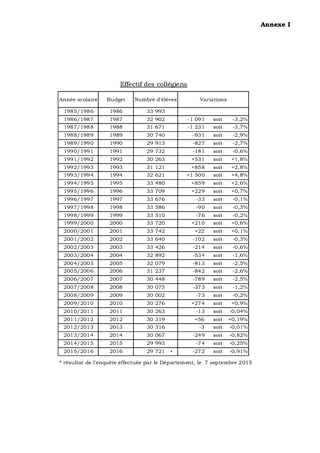 FONCTIONNEMENT DES COLLEGES PUBLICS EN 2016