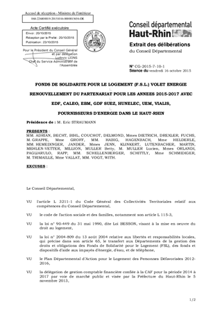 FONDS DE SOLIDARITE POUR LE LOGEMENT (F.S.L.) VOLET ENERGIE RENOUVELLEMENT DU PARTENARIAT POUR LES ANNEES 2015-2017 AVEC EDF, CALEO, EBM, GDF SUEZ, HUNELEC, UEM, VIALIS, FOURNISSEURS D'ENERGIE DANS LE HAUT-RHIN