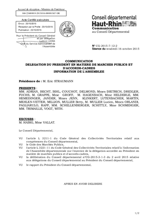 COMMUNICATION DELEGATION DU PRESIDENT EN MATIERE DE MARCHES PUBLICS ET D'ACCORDS-CADRES INFORMATION DE L'ASSEMBLEE