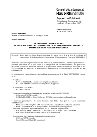 AMENAGEMENT FONCIER C442 MODIFICATION DE LA CONSTITUTION DE LA COMMISSION COMMUNALE D'AMENAGEMENT FONCIER D'ETEIMBES