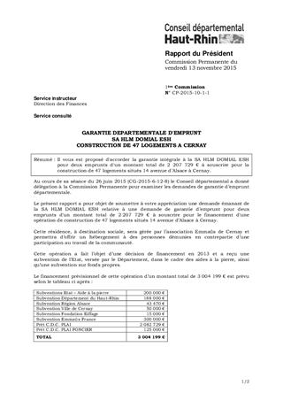 GARANTIE DEPARTEMENTALE D'EMPRUNT SA HLM DOMIAL ESH CONSTRUCTION DE 47 LOGEMENTS A CERNAY