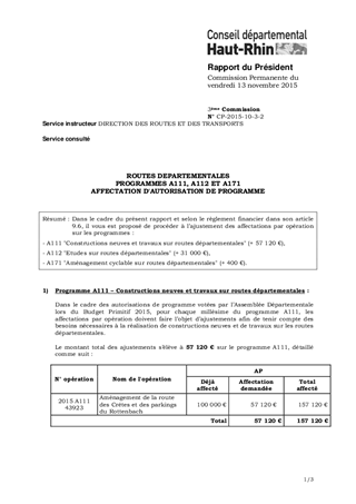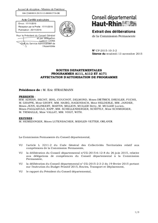 ROUTES DEPARTEMENTALES PROGRAMMES A111, A112 ET A171 AFFECTATION D'AUTORISATION DE PROGRAMME