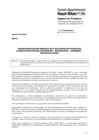 Le présent rapport a pour objet de proposer une subvention de fonctionnement exceptionnelle et non pérenne en faveur de l'association SILONE d'un montant de 8 000 euros.