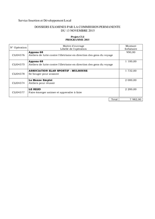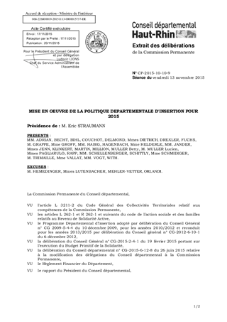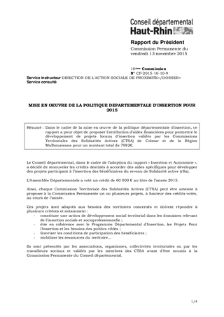 MISE EN OEUVRE DE LA POLITIQUE DEPARTEMENTALE D'INSERTION POUR 2015