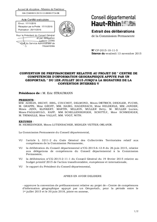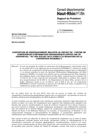 CONVENTION DE PREFINANCEMENT RELATIVE AU PROJET DE " CENTRE DE COMPETENCES D'INFORMATION GEOGRAPHIQUE APPUYE PAR UN GEOPORTAIL " DU 1ER JUILLET 2015 JUSQU'A LA SIGNATURE DE LA CONVENTION INTERREG V