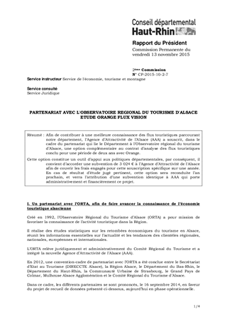 PARTENARIAT AVEC L'OBSERVATOIRE REGIONAL DU TOURISME D'ALSACE ETUDE ORANGE FLUX VISION