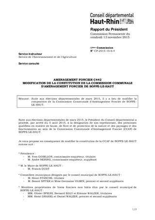 AMENAGEMENT FONCIER C442 MODIFICATION DE LA CONSTITUTION DE LA COMMISSION COMMUNALE D'AMENAGEMENT FONCIER DE SOPPE-LE-HAUT