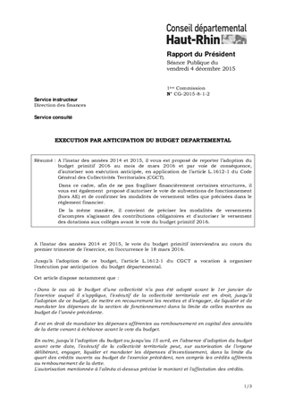 EXECUTION PAR ANTICIPATION DU BUDGET DEPARTEMENTAL