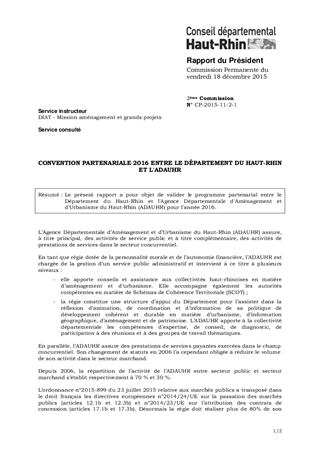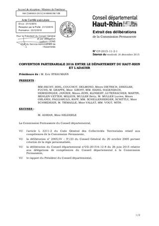 CONVENTION PARTENARIALE 2016 ENTRE LE DÉPARTEMENT DU HAUT-RHIN ET L'ADAUHR