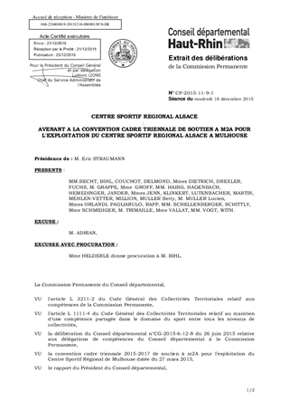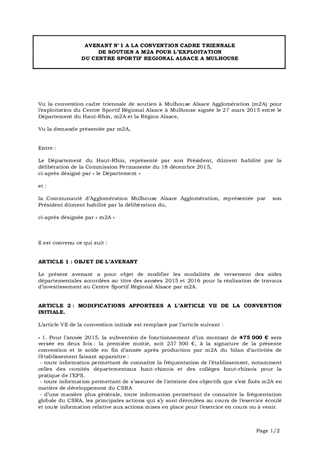 CENTRE SPORTIF REGIONAL ALSACE AVENANT A LA CONVENTION CADRE TRIENNALE DE SOUTIEN A M2A POUR L'EXPLOITATION DU CENTRE SPORTIF REGIONAL ALSACE A MULHOUSE