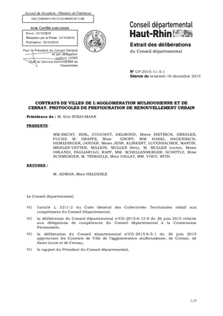 CONTRATS DE VILLES DE L'AGGLOMERATION MULHOUSIENNE ET DE CERNAY. PROTOCOLES DE PREFIGURATION DE RENOUVELLEMENT URBAIN