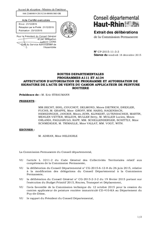 ROUTES DEPARTEMENTALES PROGRAMMES A111 ET A134 AFFECTATION D'AUTORISATION DE PROGRAMME ET AUTORISATION DE SIGNATURE DE L'ACTE DE VENTE DU CAMION APPLICATEUR DE PEINTURE ROUTIERE