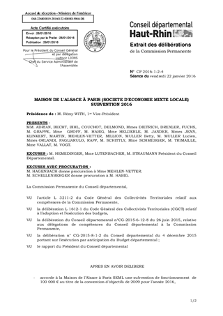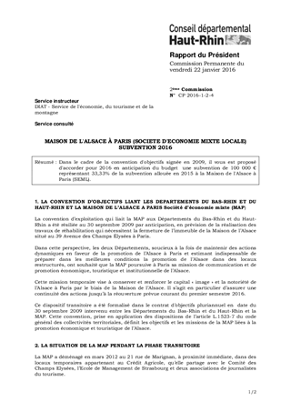 MAISON DE L'ALSACE À PARIS (SOCIETE D'ECONOMIE MIXTE LOCALE)SUBVENTION 2016