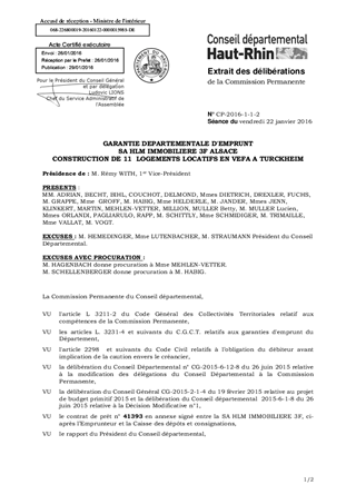 GARANTIE DEPARTEMENTALE D'EMPRUNTSA HLM IMMOBILIERE 3F ALSACECONSTRUCTION DE 11 LOGEMENTS LOCATIFS EN VEFA A TURCKHEIM