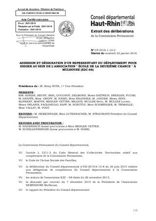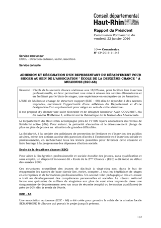 ADHESION ET DÉSIGNATION D'UN REPRESENTANT DU DÉPARTEMENT POUR SIEGER AU SEIN DE L'ASSOCIATION " ÉCOLE DE LA DEUXIÈME CHANCE " À MULHOUSE (E2C-68)