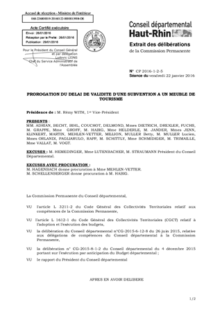 PROROGATION DU DELAI DE VALIDITE D'UNE SUBVENTION A UN MEUBLE DE TOURISME