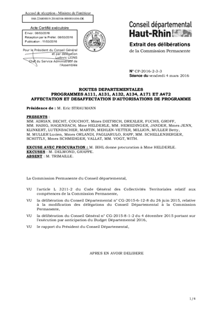 ROUTES DEPARTEMENTALESPROGRAMMES A111, A131, A132, A134, A171 ET A472AFFECTATION ET DESAFFECTATION D'AUTORISATIONS DE PROGRAMME