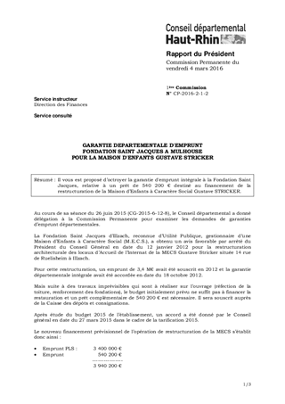 GARANTIE DEPARTEMENTALE D'EMPRUNTFONDATION SAINT JACQUES A MULHOUSEPOUR LA MAISON D'ENFANTS GUSTAVE STRICKER