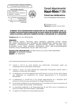 AVENANT AUX CONVENTIONS D'OBJECTIFS ET DE FINANCEMENT AVEC LA CAISSE D'ALLOCATIONS FAMILIALES DU HAUT-RHIN EN FAVEUR DES DEUX LIEUX D'ACCUEIL ENFANTS PARENTS SITUES A MULHOUSE ET A MUNSTER