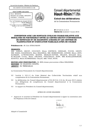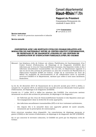CONVENTION AVEC LES HOPITAUX CIVILS DE COLMAR RELATIVE AUX MODALITES DE PARTENARIAT ENTRE LE CENTRE GRATUIT D'INFORMATION, DE DEPISTAGE ET DE DIAGNOSTIC (CEGIDD) ET LES CENTRES DE PLANIFICATION ET D'EDUCATION FAMILIALE (CPEF) DE COLMAR