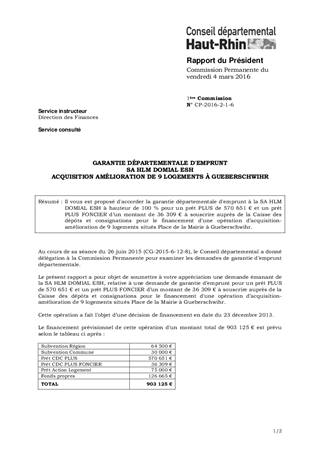 GARANTIE DÉPARTEMENTALE D'EMPRUNTSA HLM DOMIAL ESHACQUISITION AMÉLIORATION DE 9 LOGEMENTS À GUEBERSCHWIHR