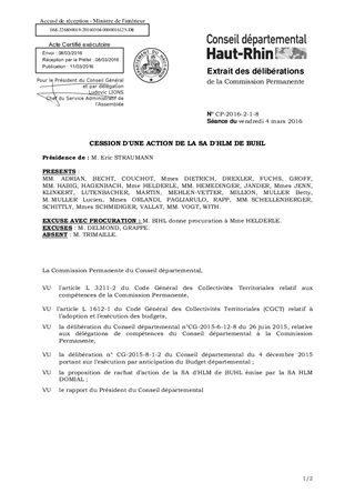 CESSION D'UNE ACTION DE LA SA D'HLM DE BUHL