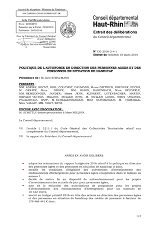 Le Budget Primitif 2016 des actions en direction des personnes âgées et des personnes en situation de handicap avec, nouveauté de ce budget, l’intégration des compensations liées aux Allocations Individuelles de Solidarité, s’établit à 177,73 M€, dont 79,04 M€ pour les personnes âgées et 98,69M€ pour les personnes handicapées, soit une augmentation de 3,6M€ (+2,1%). A périmètre constant par rapport à 2015, hors transfert dans ce budget des compensations liées aux Allocations Individuelles de Solidarité, les dépenses totales sont en augmentation de 1,7M€, soit +0,9%. Cela traduit, dans un contexte favorisant de fortes augmentations de dépenses liées à la loi d’Adaptation de la Société au Vieillissement et à l’augmentation des maladies chroniques, la recherche d’un équilibre entre la réponse aux besoins croissants de cette population et la nécessaire maîtrise de nos dépenses. Les recettes sont évaluées à 53,9M€, en augmentation de 22,7%. A périmètre constant par rapport à 2015, les recettes s’élèvent à 47,4M€, soit +7,7%.