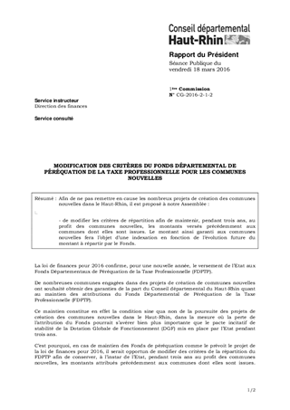 MODIFICATION DES CRITÈRES DU FONDS DÉPARTEMENTAL DE PÉRÉQUATION DE LA TAXE PROFESSIONNELLE POUR LES COMMUNES NOUVELLES